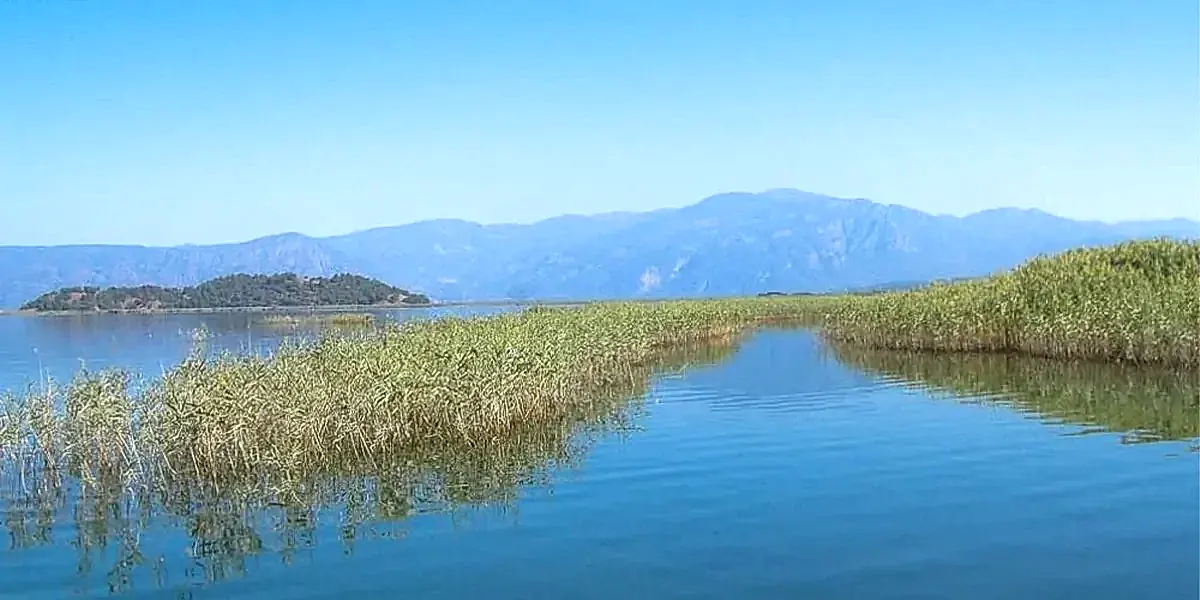 After Kaunos, the boat continues through the narrow Dalyan Channel, a scenic waterway connecting the river to the vast Sultaniye Mud Bath Lake. This stretch offers views of reed beds, forested hills, and the gradual widening into the lake’s open waters. As you enter Sultaniye Mud Bath Lake, the landscape opens up to reveal a large, peaceful freshwater body surrounded by mountains and pine forests, creating a sense of serenity perfect for relaxation.Swimming Break in Sultaniye Mud Bath Lake